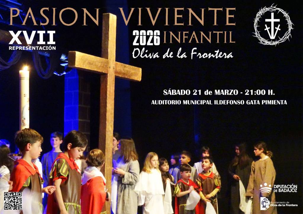 El acto concluyó con el descubrimiento del spot promocional de este año y de los carteles oficiales, financiados por la Diputación de Badajoz y la Pastelería Luis Avellí, así como los correspondientes a los concursos de fotografía y vídeo y el de la Pasión Viviente Infantil. Un broche final para una noche que volvió a demostrar que la Pasión Viviente de Oliva de la Frontera no es solo una representación, sino un legado vivo que se transmite de generación en generación.
