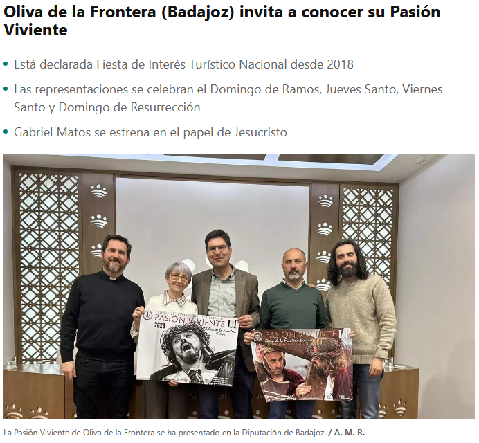 El Periódico de Extremadura recoge la noticia de la presentación de la LI edición de la Pasión Viviente de Oliva de la Frontera.